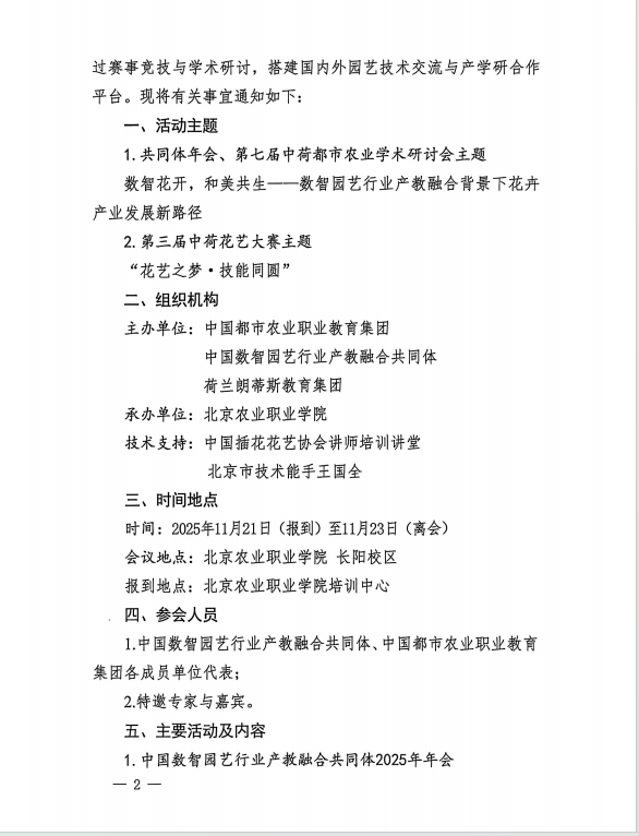 中国都市农业职业教育集团关于召开中国数智园艺行业产教融合共同体2025年年会暨第三届中荷花艺大赛等交流活动的通知