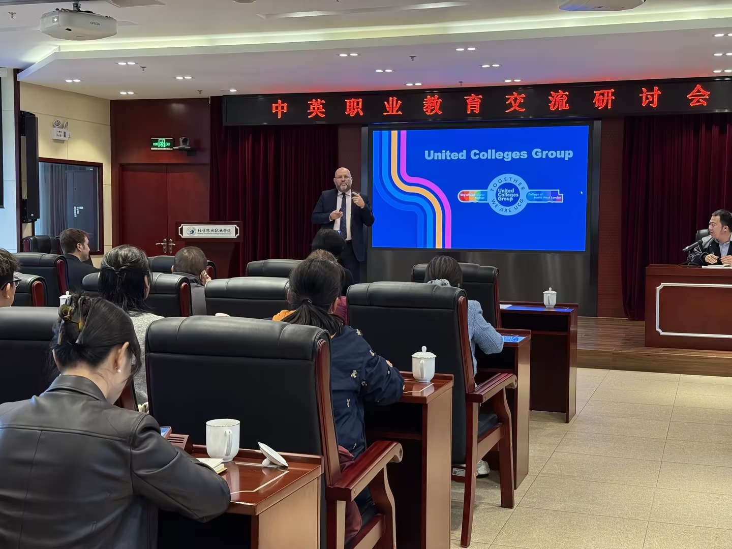 为深化职业教育国际交流,助力高素质技术技能人才培养,10月17日上午,第二届校园文化周中英职业教育交流研讨会在我校长阳校区行政楼顺利举行。学校二级学院主管教学院长、系主任、专业主任、外事专员、国际合作与交流处、学生国际交流服务协会全体参会。英国联合学院集团首席执行官兼集团总校长斯蒂芬·戴维斯应邀作“英国职业教育发展历程和创新”专题讲座,双方围绕专业建设与师生发展等议题展开深入交流,并在多个方面达成合作共识。学校党委副书记周洪生在研讨会之前会见了斯蒂芬·戴维斯一行。