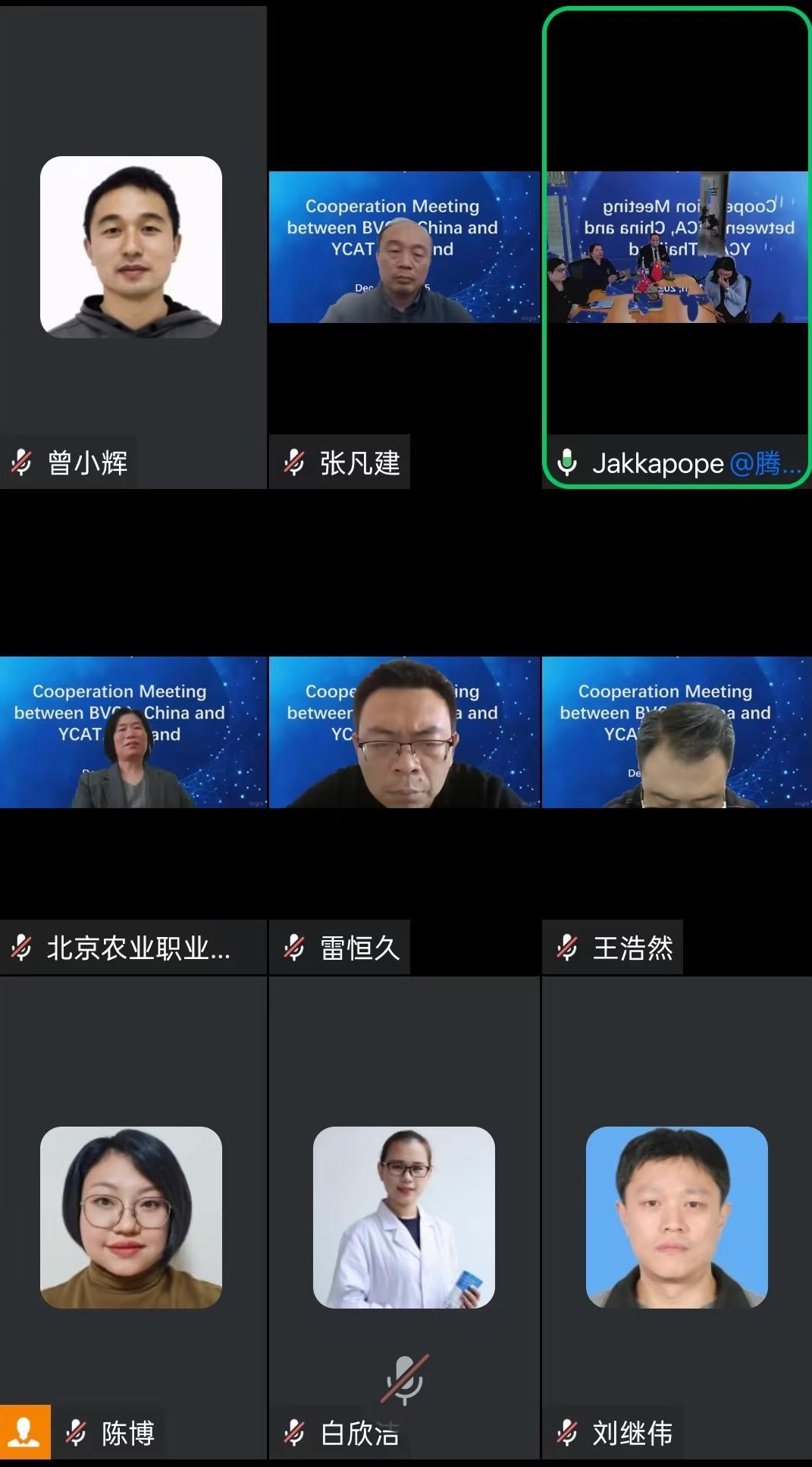 12月17日上午,学校与泰国益梭通农业技术学院举办线上合作研讨会。益梭通农业技术学院动物科学院院长扎嘎坡·蒙贡索瓦德及相关部门负责人、学校园艺园林学院副院长陈博、动物科技学院副院长张凡建、相关教师代表和国际合作与交流处全体参会。益梭通农业技术学院校长扎嘎坡·蒙贡索瓦德出席活动。会议由北京农业职业学院国际合作与交流处处长张红主持。