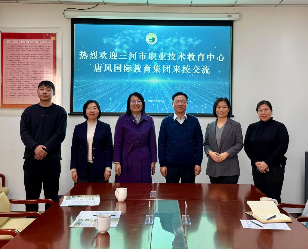 12月29日下午,三河市职业技术教育中心(三河开放大学)专职副书记候富辉一行来校调研交流,学校党委常委、副校长谷天刚出席座谈。国际合作与交流处处长张红主持会议。