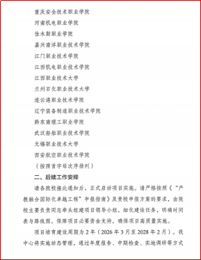 “产教融合国际化卓越工程”是发改委国际合作中心为推动《职业教育产教融合赋能提升行动实施方案(2023—2025年)》落实、助力“职教出海”而设立的重点项目。经院校自主申报、资格审核、现场调研、综合评估等严格程序,最终确定包括我校在内的17所院校入围立项名单。