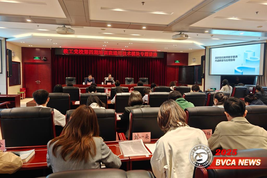 信息中心副主任肖兵以《高职院校教师数字素养内涵解读与应用指导》为题,围绕数字化意识维度、数字技术知识与技能维度、数字化应用维度、数字社会责任维度及专业发展维度等内容,为参训教师开展通用技术模块首期课程,助力教师提升数字素养与工作效率。