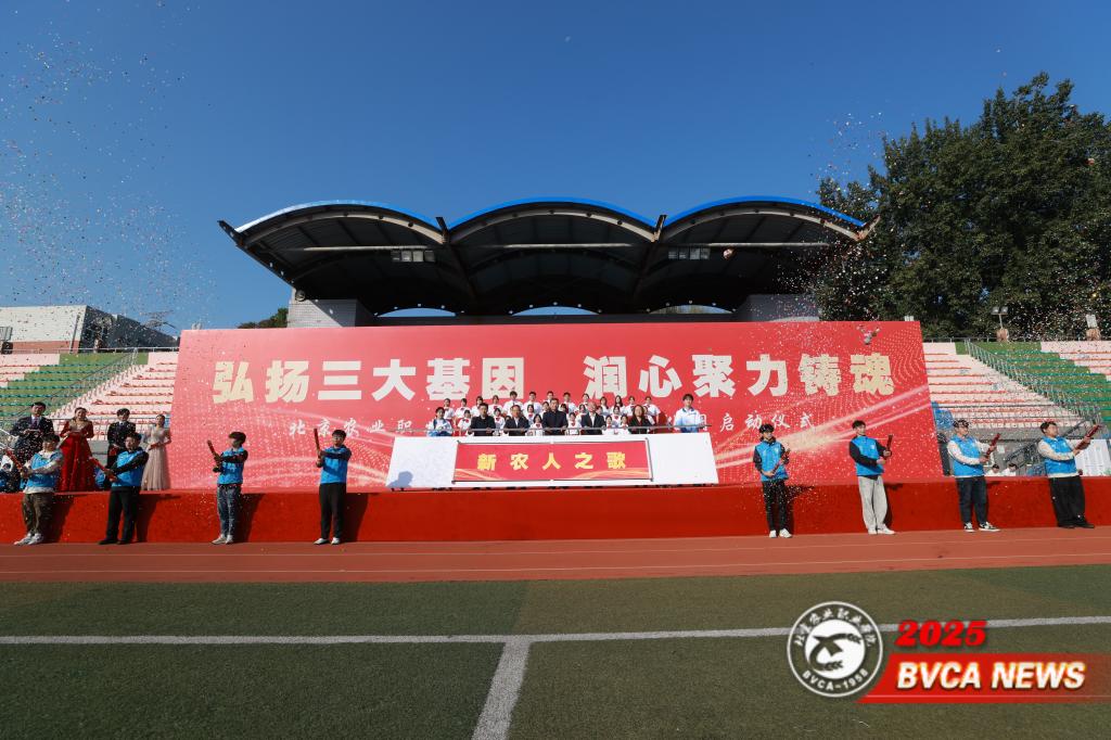 在庄重而热烈的氛围中,党委书记周志成,党委副书记、院长张德强,退休老领导、原党委书记崔砚青,优秀校友代表、首农北京市长阳农场有限公司党总支书记郭建波,新校歌词作者、退休教授赵庶吏和在校生代表共同为新校歌——《新农人之歌》揭幕,第二届校园文化周正式开幕。