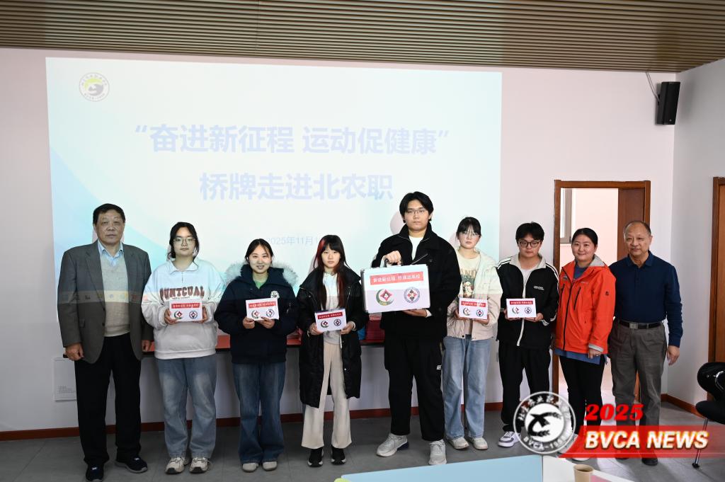 11月10日下午,长阳校区创业园多功能厅氛围热烈,中国桥牌协会、北京市海淀区桥牌协会联合我校举办的“奋进新征程 运动促健康”桥牌进北农职主题活动圆满举行。校原党委书记李云伏、校党委副书记鲁雷、团委相关负责人与众多师生齐聚一堂,共赴这场智慧与文化的交融盛宴。