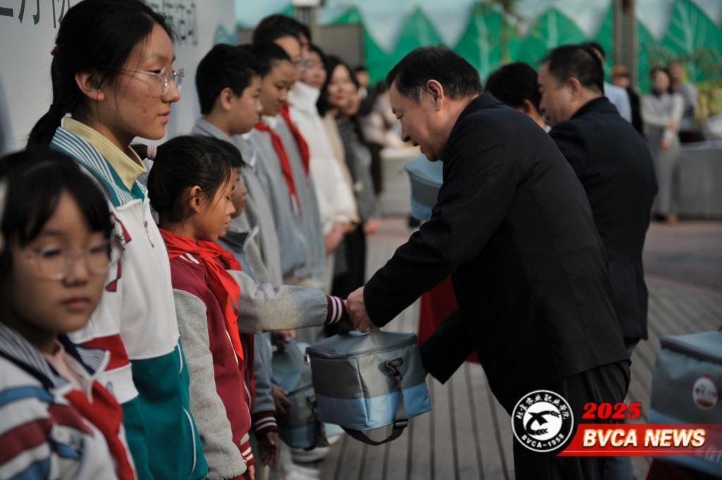 启动仪式上,王小平和周洪生向永定河流域7所大、中、小学和幼儿园师生赠送“土壤医生”工具包。