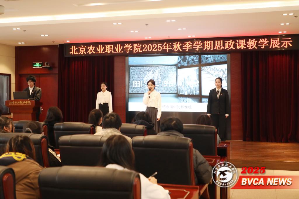 新入职思政教师的教学展示环节,赵莎、杨东丽、郭英菡三名教师围绕“习近平在闽工作期间关于发展职业教育的探索与实践”“传承红色基因从‘他们’到‘我们’”和“破解国家粮食安全的二重迷思”主题,聚焦学校职教基因、农业基因、红色基因,通过翔实数据与鲜活案例开展教学展示,呈现思政课教学创新成果。