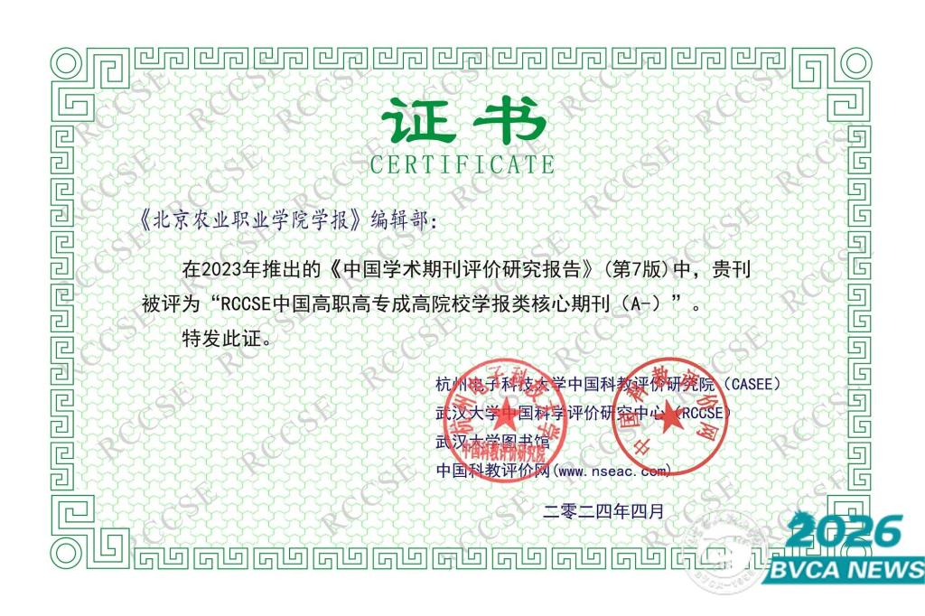 《北京农业职业学院学报》获评高职高专院校学报类核心期刊