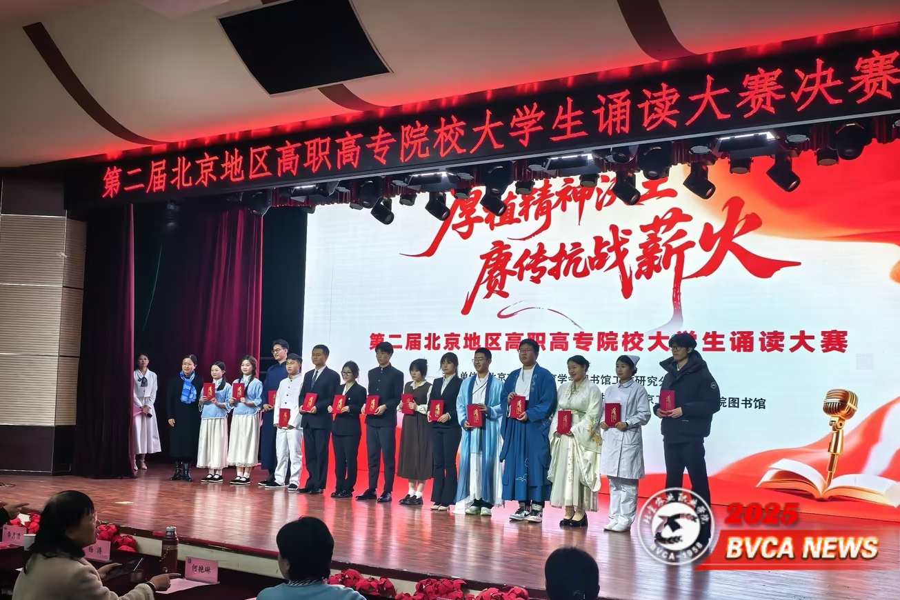 11月26日下午,以“厚植精神沃土,赓传抗战薪火”为主题的第二届北京地区高职高专大学生诵读大赛决赛在北京卫生职业学院礼堂圆满落幕。大赛由北京市高等教育学会图书馆工作研究分会主办、北京卫生职业学院承办,吸引北京地区15所高职高专院校的33组选手同台竞技,我校食品与生物工程学院25级绿检2511-二班刘思爽同学代表学校参赛,斩获三等奖。