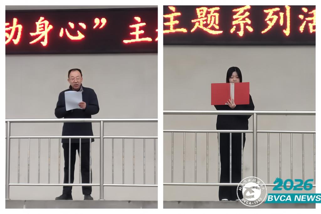教师代表姚长永老师介绍了本次活动的背景和意义,并号召全体师生树立“健康第一”的理念,做阳光运动的力行者和健康校园的携手共建者。学生代表陈艺萌同学向全体同学发出倡议:认真参与每一次早锻炼,积极参加每一堂体育课,主动投身到主题系列活动中来,做“健康校园”的传播者。