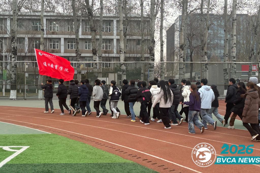 起跑发令声响,通识教育学院(体育部)院旗被高高举起,引领着身后的青年学子,步伐铿锵有力、动作整齐划一。运动场的跑道上汇成一条奔涌的青春河流,用脚步丈量着“健康第一”的理念。