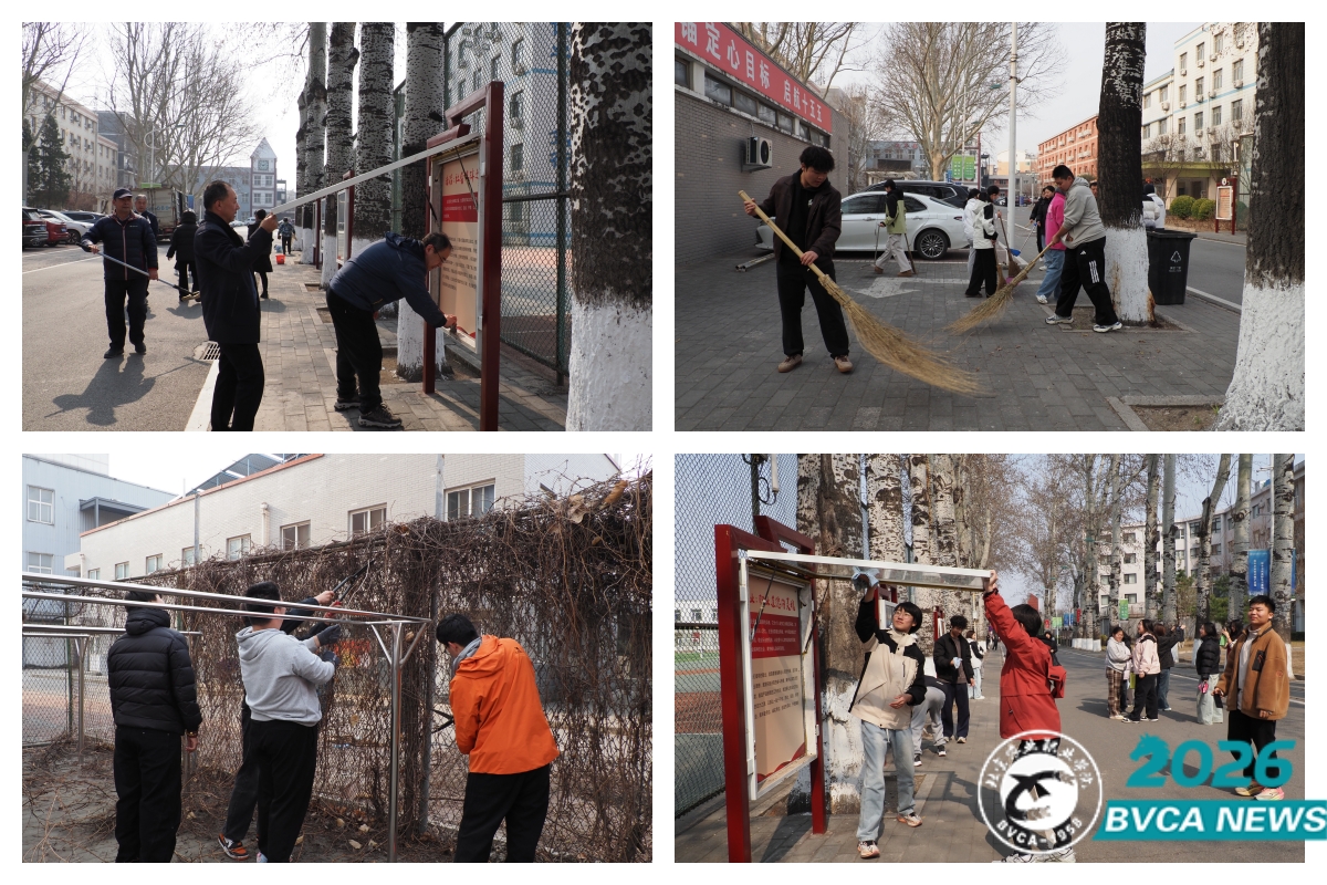 活动以各支部为单位,党员教师率先垂范,带领学生志愿者分工协作,全面清理校园道路、绿化带、公共区域及卫生死角,通过清扫垃圾、擦拭设施、规整环境,践行志愿精神。