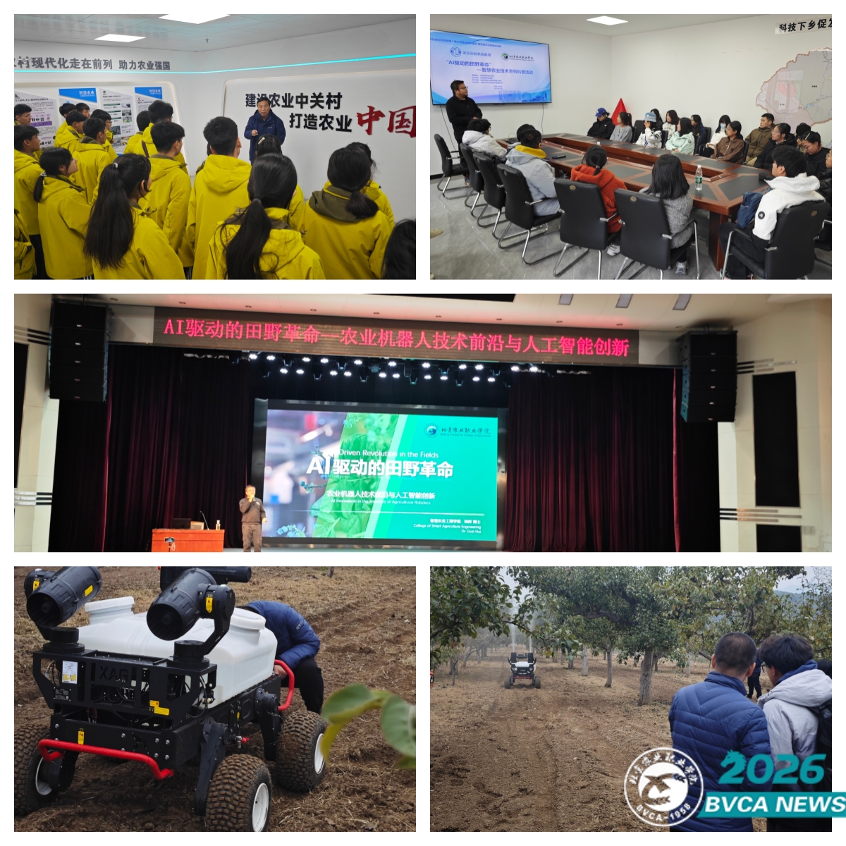 活动围绕“AI+农业”前沿展开。其中,“AI驱动的田野革命”系列讲座聚焦农业机器人、无人机等技术,先后进入校园、生态园及科技园区,线上线下结合开展4场,覆盖1420人次,面向师生、农户及技术人员等普及智慧农业知识;实践环节在门头沟区孟悟生态园举办的农业机器人展示与实践营,吸引200余人参与体验果园植保机器人及无人机,在平谷京瓦中心温室示范园组织百余名学生参观“温室AI大脑”的智能化管理;此外,在智慧农业工程学院举办“未来农场主”创意挑战赛,助力拓展了学生对智慧农业的认知,促进学用结合。