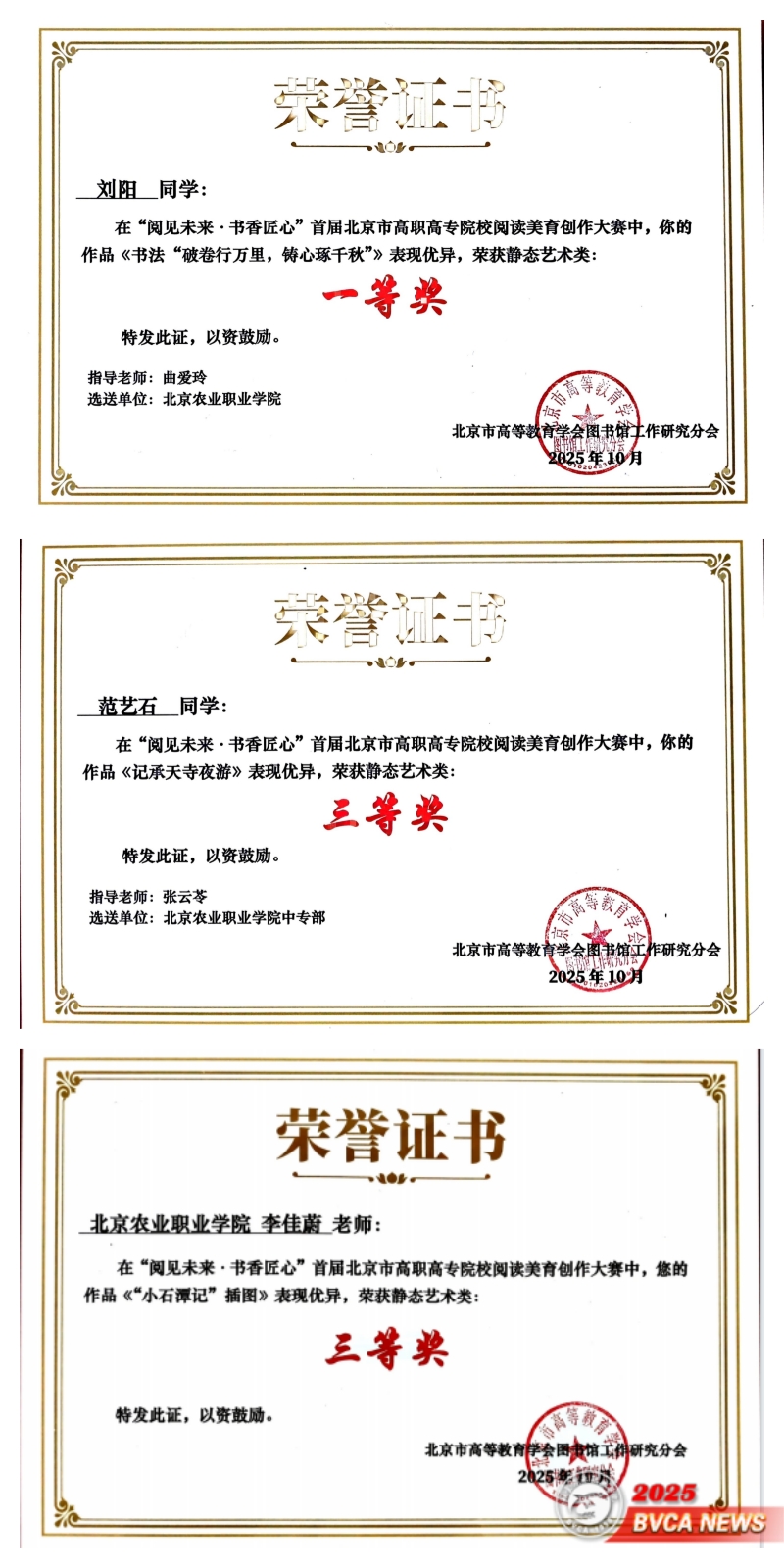 近日,北京市高等教育学会图书馆工作研究分会举办的首届北京市高职高专院校阅读美育创作大赛落幕,学校斩获佳绩。