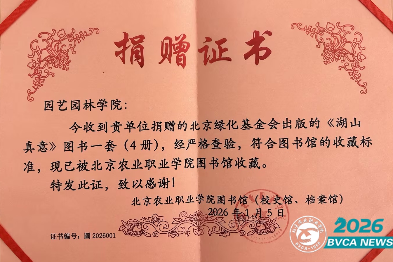 1月5日,北京绿化基金会向我校捐赠《颐和园文化研究丛书》一套,由园艺园林学院代表接收。这份丰富了学校文化资源,也为全校“书香进学校 阅读伴成长”系列活动注入专业内涵与历史底蕴。