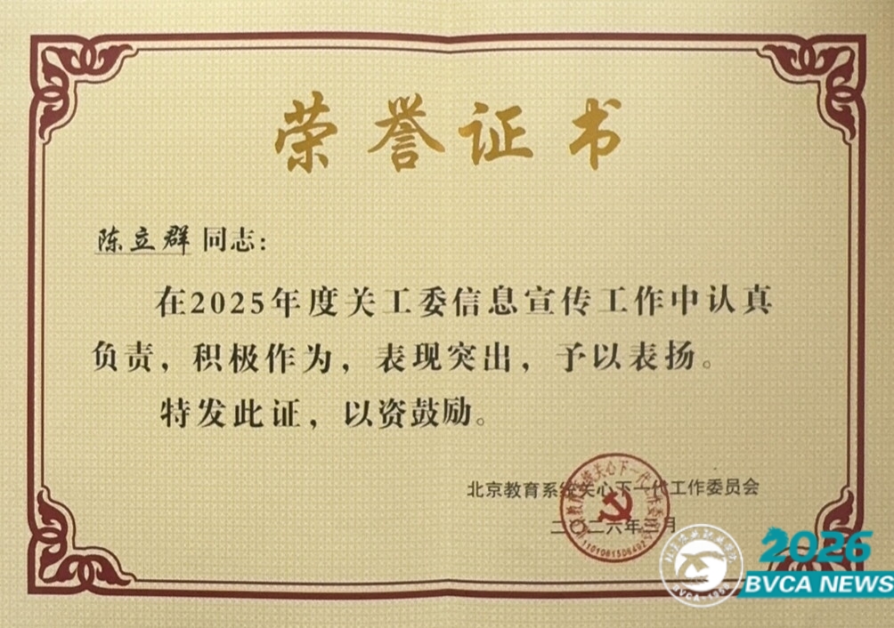 3月16日,北京教育系统关心下一代工作委员会召开2026年度工作会。会上,我校关心下一代工作委员会(以下简称“关工委”)凭借扎实过硬的工作实绩、特色鲜明的育人成效,在本次评选中斩获6项荣誉。