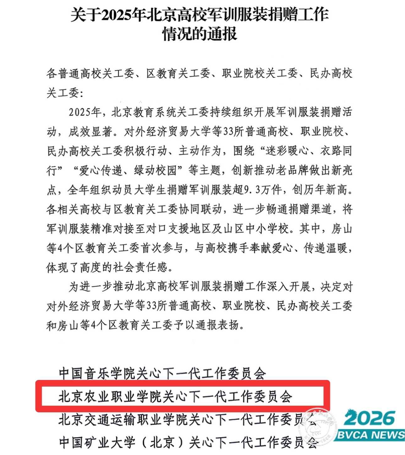 学校关工委2025年北京高校军训服装捐赠工作被通报表扬。