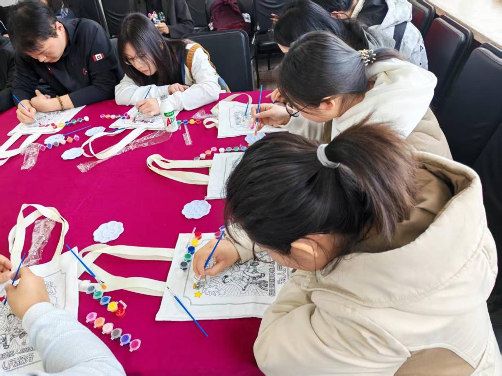 创作过程中,同学们相互交流、互帮互助,现场氛围温馨热烈,一笔一画都饱含着对雷锋同志的崇敬之情。经过精心创作,一个个原本空白的帆布包变得色彩鲜明、寓意深刻,成为独具意义的“学雷锋文创作品”,既展现了青年学子的动手能力与创新思维,更让雷锋精神在指尖传承、在心中扎根。
