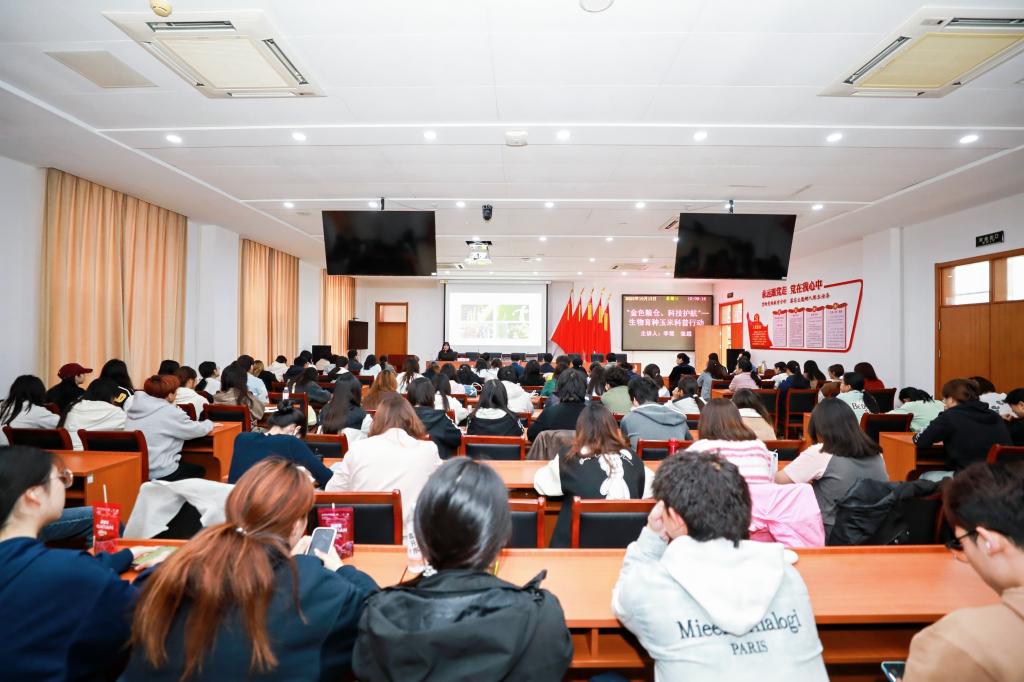 10月15日上午,食品与生物工程学院生物技术系党支部联合农业农村部科技发展中心,在图书馆三层学术报告厅成功举办“金色粮仓,科技护航”支部共建暨生物育种科普活动。农业农村部科技发展中心李宁处长一行,学院党总支书记王艳四、副院长杨新建、副书记关伟,以及支部全体教师与百余名学生共同参与。
