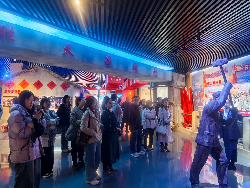 上午9时,党员们抵达胜天渠纪念馆。在讲解员带领下,大家通过珍贵图片、实物和影像,重温上世纪七十年代张坊公社干部群众在党的领导下,历时两年零两个月,靠钢钎铁锤在悬崖峭壁上凿出21公里“生命渠”的壮举。老党员王秀清“铁锤砸头仍不下火线”的故事,让现场每一位党员都深受触动。老师们表示要把“自力更生、艰苦创业、无私奉献、团结协作”的胜天渠精神转化为推动职业教育高质量发展的强大动力,投入到教育教学工作中。