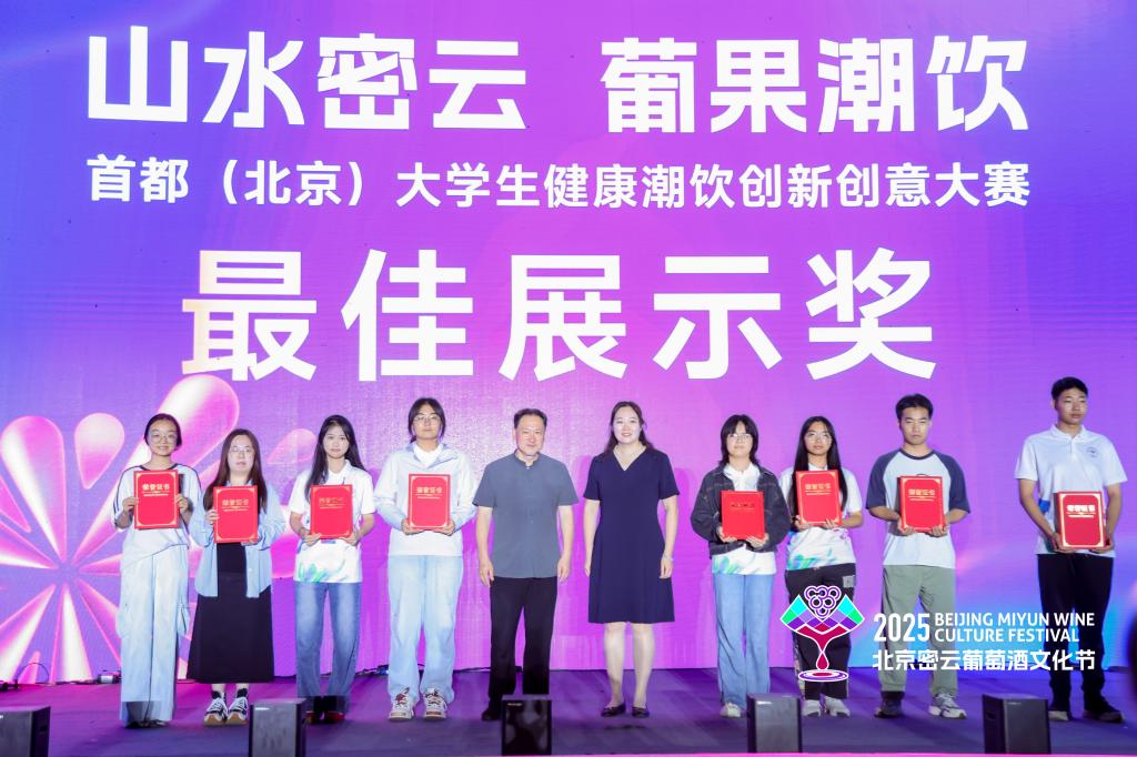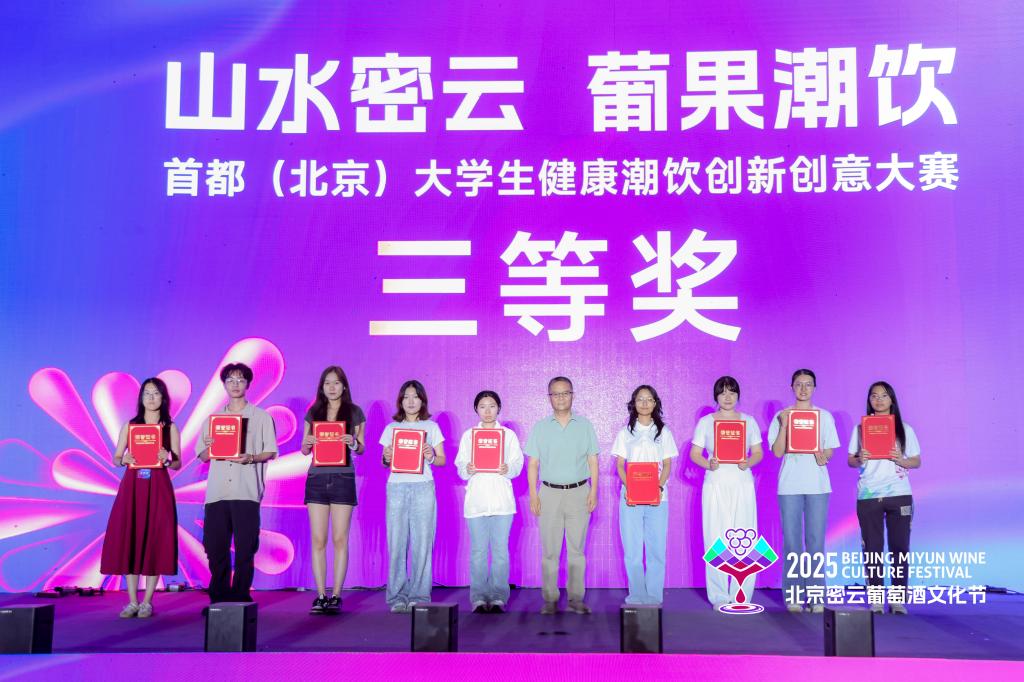 两支队伍以密云葡萄酒为基底,融入低糖、益生菌、功能果粉等健康元素,调制出《葡趣实验室》、《葡萃新生》两款创意潮饮,赢得评委与观众点赞。赛后,师生团队受邀参加“山水密云酒香世界”密云葡萄酒文化节,通过实地考察与行业交流,进一步拓宽了产业视野。