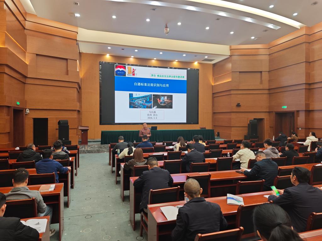 2026年3月6日,我校农产品食品质量安全控制团队首席专家、食品与生物工程学院马长路教授受邀为贵州茅台酒股份有限公司制曲、制酒、勾调、灌装车间白酒工艺管理、食品安全控制和设备动力维护等关键岗位120余技术骨干进行了“白酒标准法规识别与应用”专题培训。