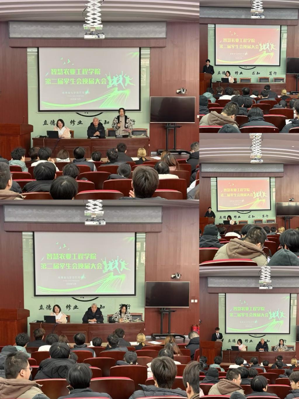 2025年12月22日,智慧农业工程学院第二届学生会换届大会顺利召开。学院党总支副书记齐军喆、学生办公室主任张雪华、辅导员李泰然、陈晓燕及全体学生代表参会,共同见证青春接力。