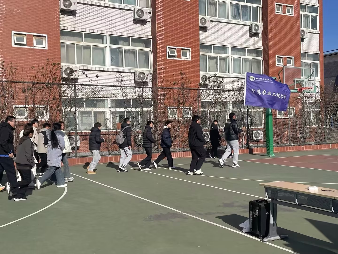 为弘扬“一二·九”精神,引导学子将爱国情怀转化为奋进动力,2025年12月8日中午,智慧农业工程学院“传承一二·九精神,奔跑竞智绘青春”主题活动在学校篮球场举行,学院领导班子、学办全体人员出席活动。