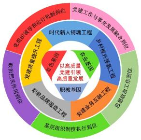 党建探索创新取得新成效。党总支探索形成“1355”党建工作模式,其中“1”是紧扣一条主线(以高质量党建引领高质量发展),“3”是传承农职三大基因(红色基因、农业基因、职教基因),第一个“5”是实施五项工程(党建质量提升工程、时代新人铸魂工程、乡村振兴强基工程、职教品牌锻造工程、党建业务互融工程),第二个“5”是落实五个到位(党组织领导和运行机制到位、政治把关作用到位、思想政治工作到位、基层组织制度执行到位、党建工作与事业发展融合到位)。园艺系党支部创新形成“党建红引领专业绿”党建工作品牌。园林系党支部凝练形成以“五色”为特点的多彩绿州党建工作品牌,其中红色为传承“红色”基因,把牢思想之舵;青色为严守“青色”规范,铸就战斗堡垒;蓝色为开展“蓝色”实践,激发团队活力;绿色为实施“绿色”培养,推进人才培育;金色为打造“金色”师资,服务生态文明。